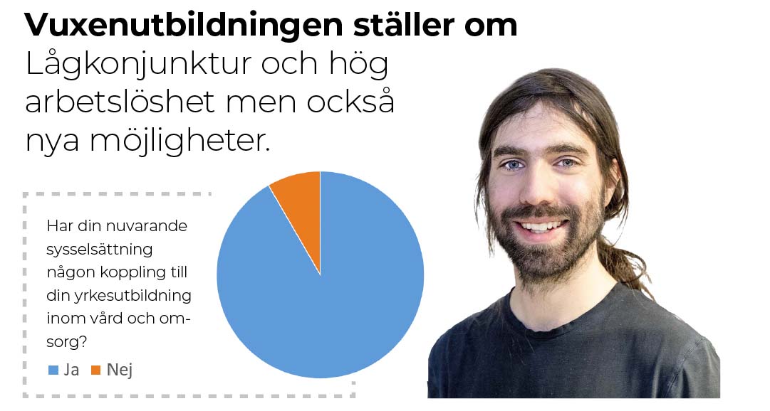Sverige befinner sig i lågkonjunktur, men vissa branscher fortsätter att växa. Vård och omsorg står starka, medan behovet av barnskötare minskar. Vuxenutbildningen i Borås följer utvecklingen och anpassar sitt utbud efter samhällets förändrade behov för att möta både dagens och framtidens kompetensbehov , säger verksamhetsutvecklare Jonas Wieszkos.